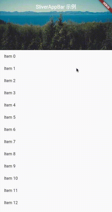 flexibleSpace | Widget | 展开区域的内容(可滚动/视差效果) | - | flexibleSpace: FlexibleSpaceBar(...) |